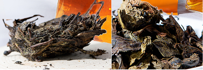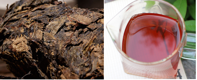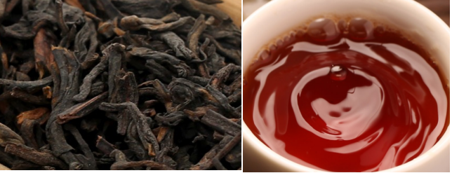 • 散茶形式,可以长期存放,越陈越香,茶叶的外形黑褐油润,冲泡出来茶汤清澈透亮,红润的琥珀色,滋味醇厚,有甘甜味。