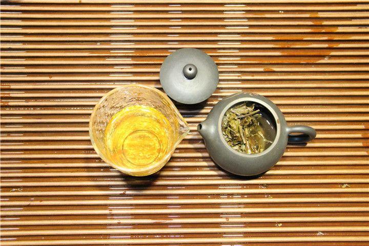 开始:色泽绿叶红镶边、汤色偏金黄透绿、滋味刺激性较大,散发着淡淡的花香和清香带着青味。