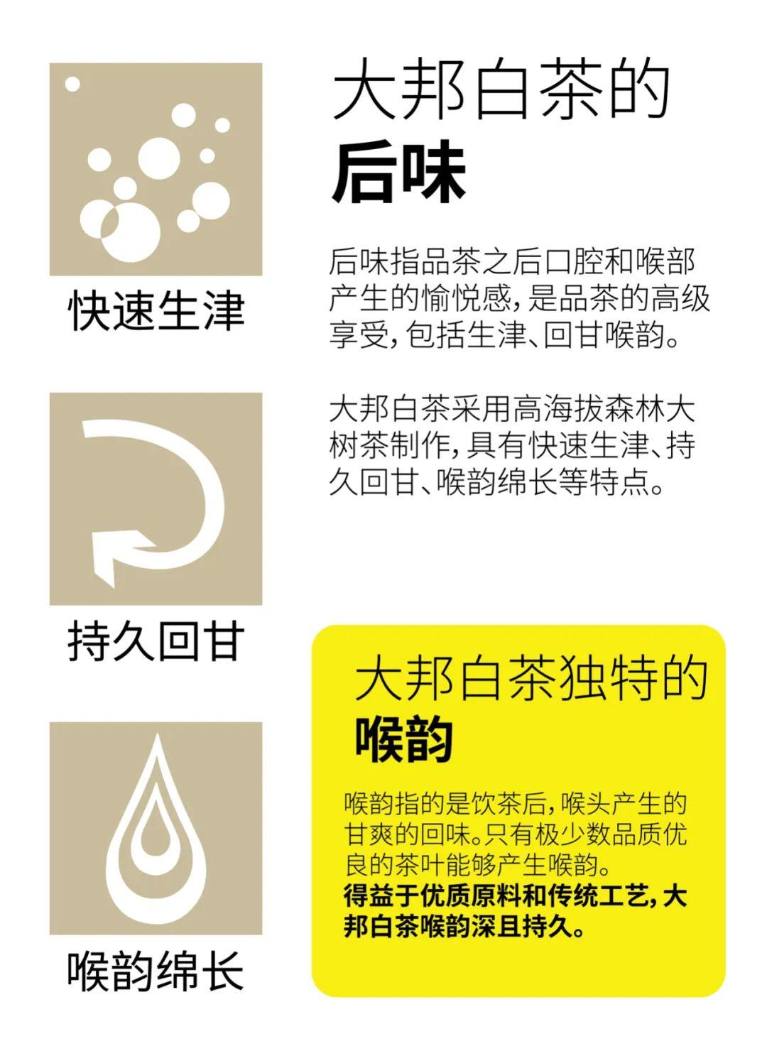 快速生津、持久回甘、喉韵绵长,这是顶级白茶才有的表现。使用云南古树茶、森林大树茶制作的云南白茶,具有较好的后味表现。‍‍‍‍‍‍‍